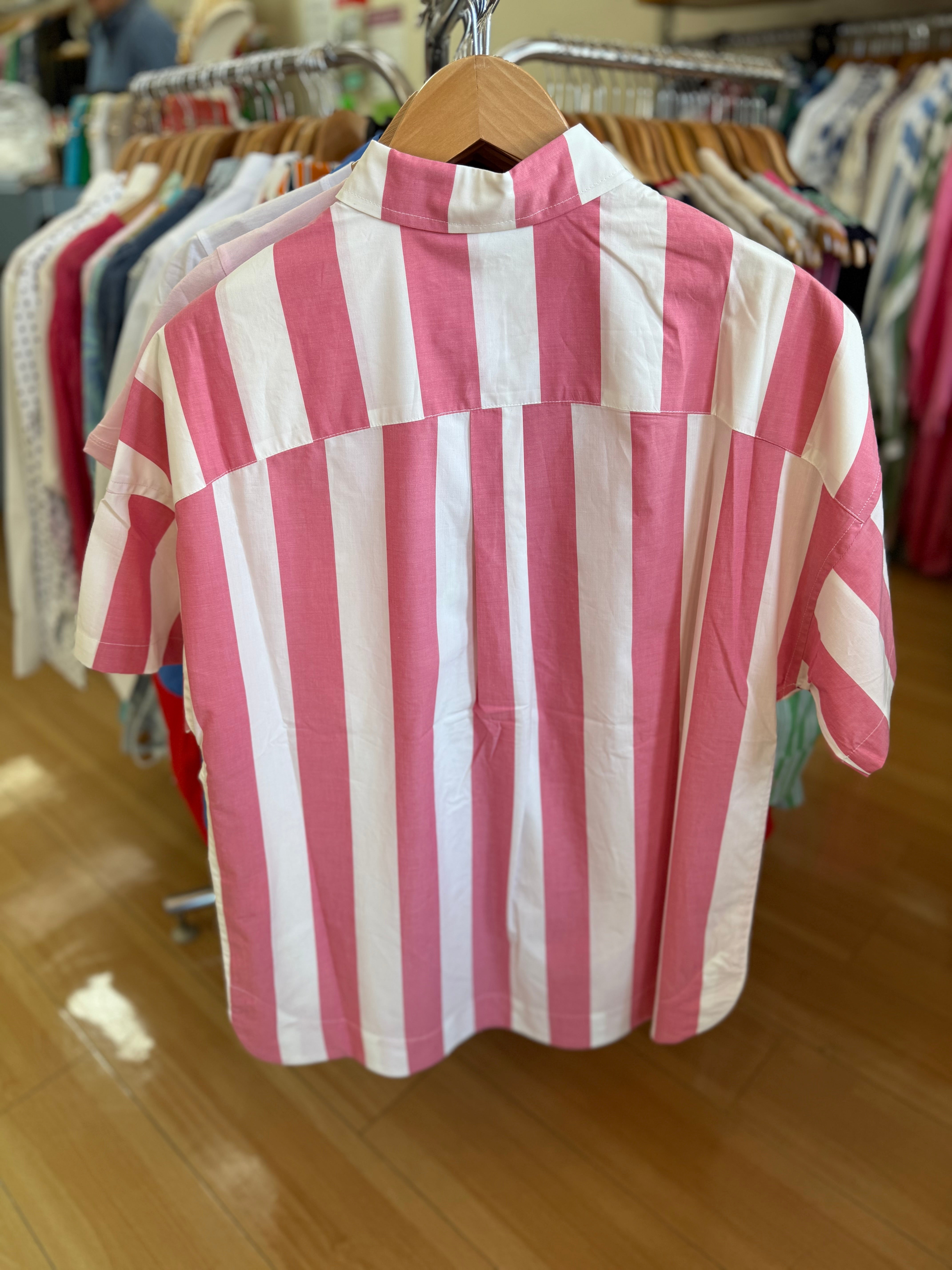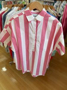 Chiara Half Placket Short Sleeve Shirt | Raspberry/White Stripe
