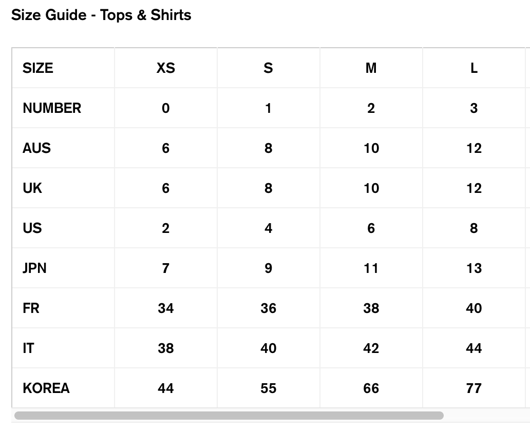 • Our models typically wear size M for Shirts, Knits, and Tops