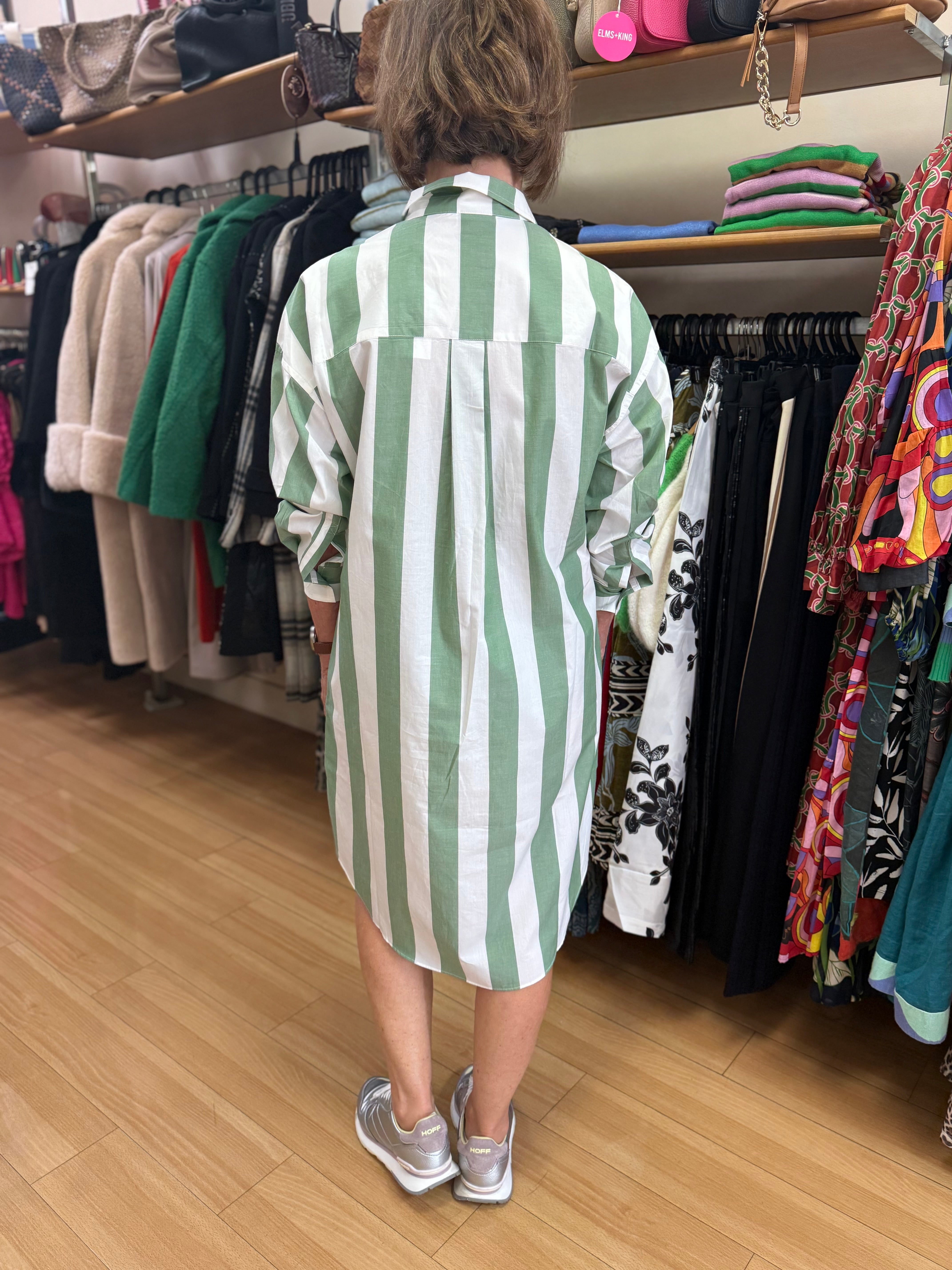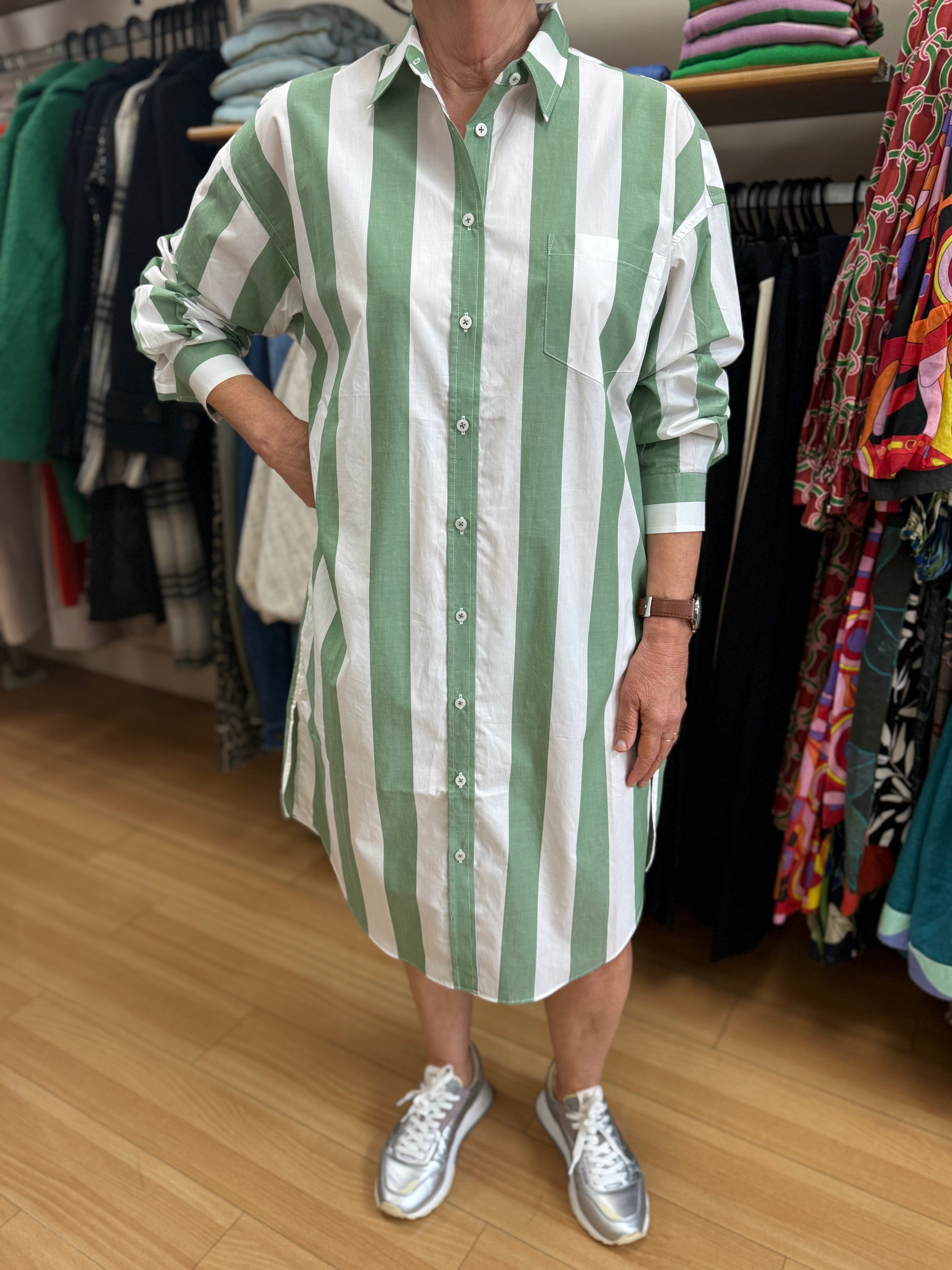 Chiara Midi Dress | Forest/White Stripe | Size S
