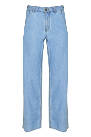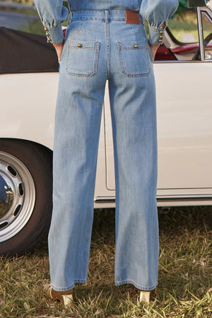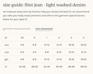 The Flint Jean exudes contemporary attitude while embracing fall’s penchant for refined structure. This hybrid jean-pant brings a flattering high waist and soft flattering proportions through its wide leg, whilst maintaining a relaxed elegance.