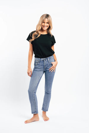 Rock the Kirby Jean - Sun Bleached, a slim fit boyfriend jean that's both comfy and stylish. With a mid rise waist and a leg that tapers ever so slightly, this flattering jean has just the right amount of stretch for everyday wear.