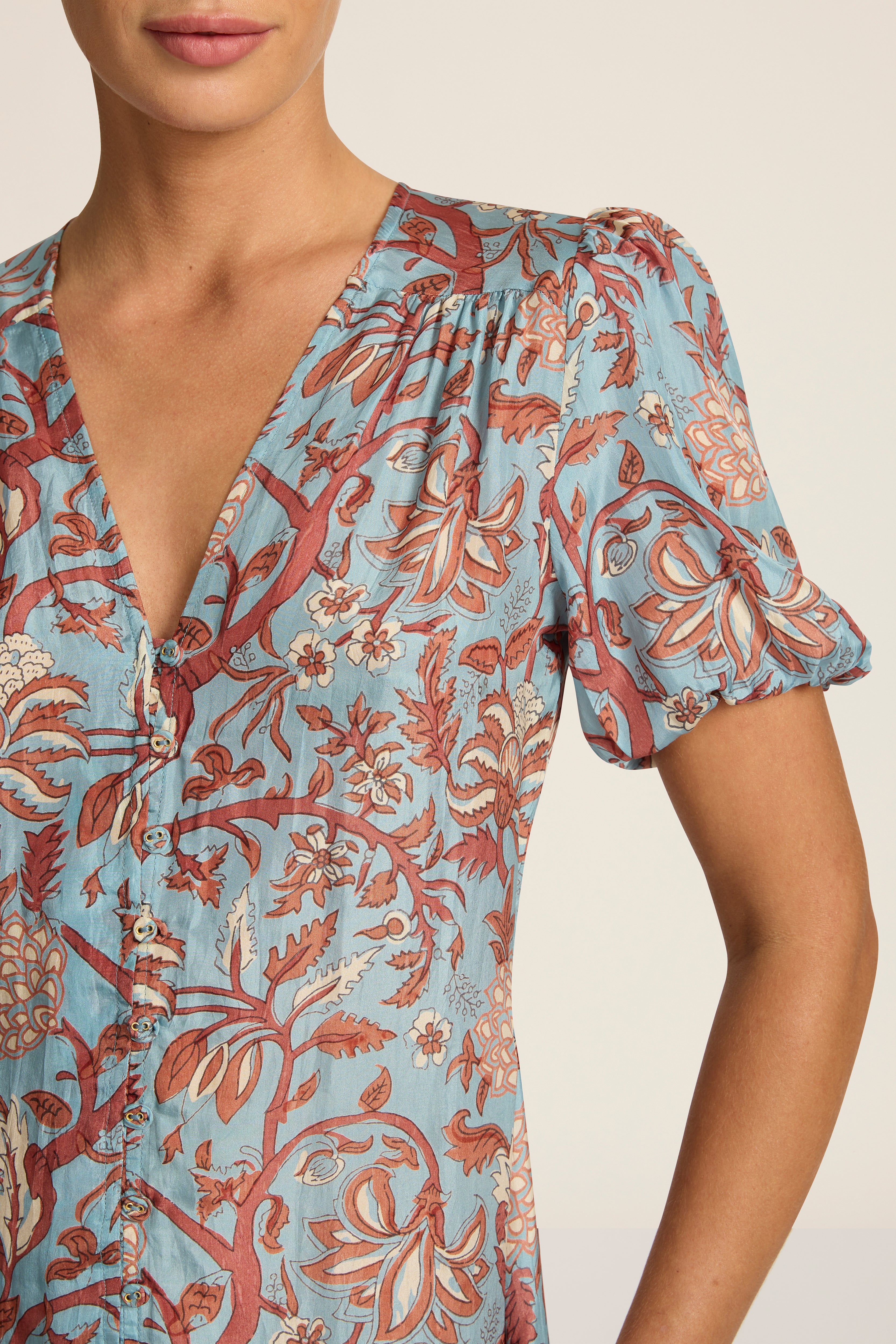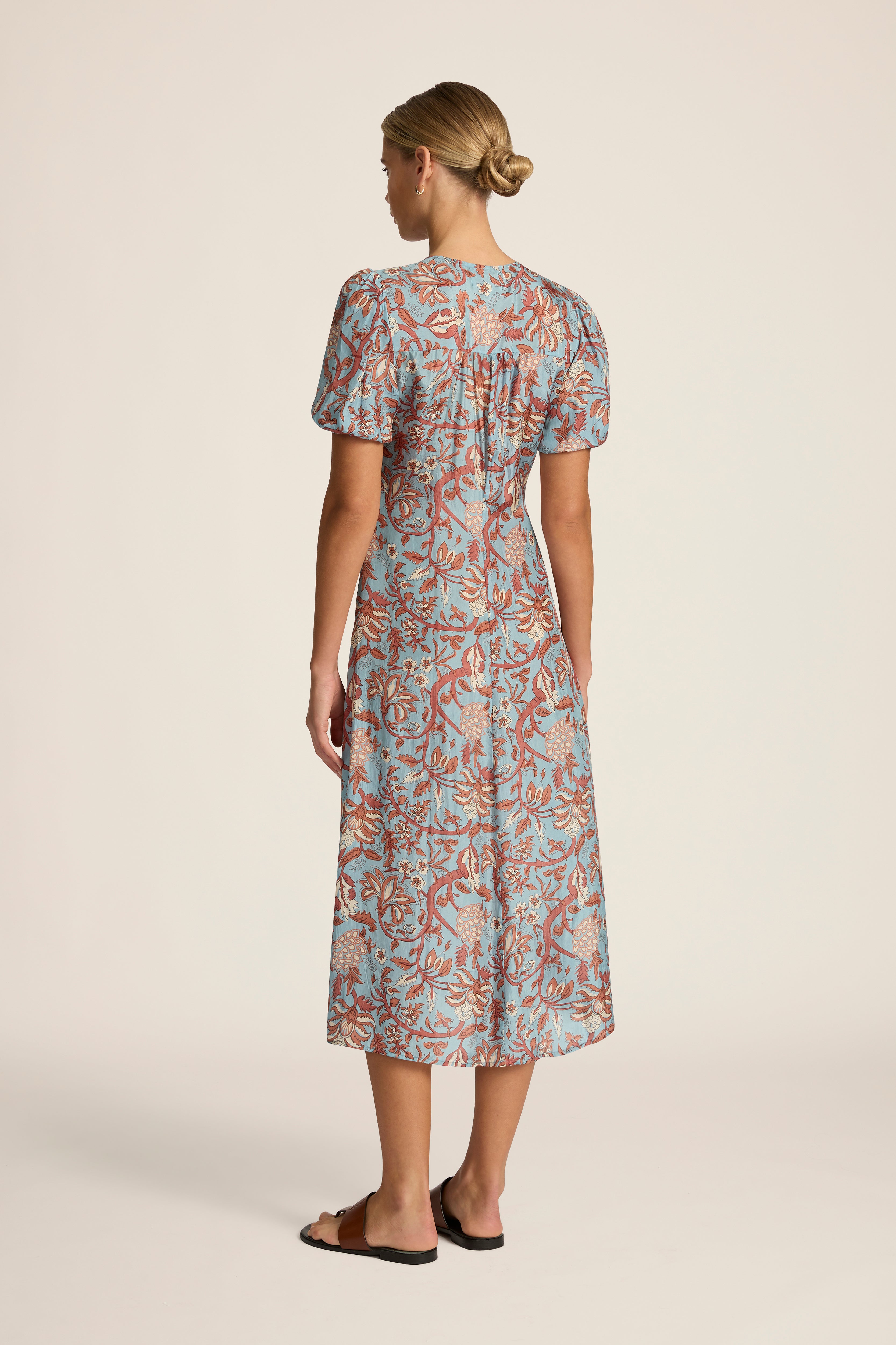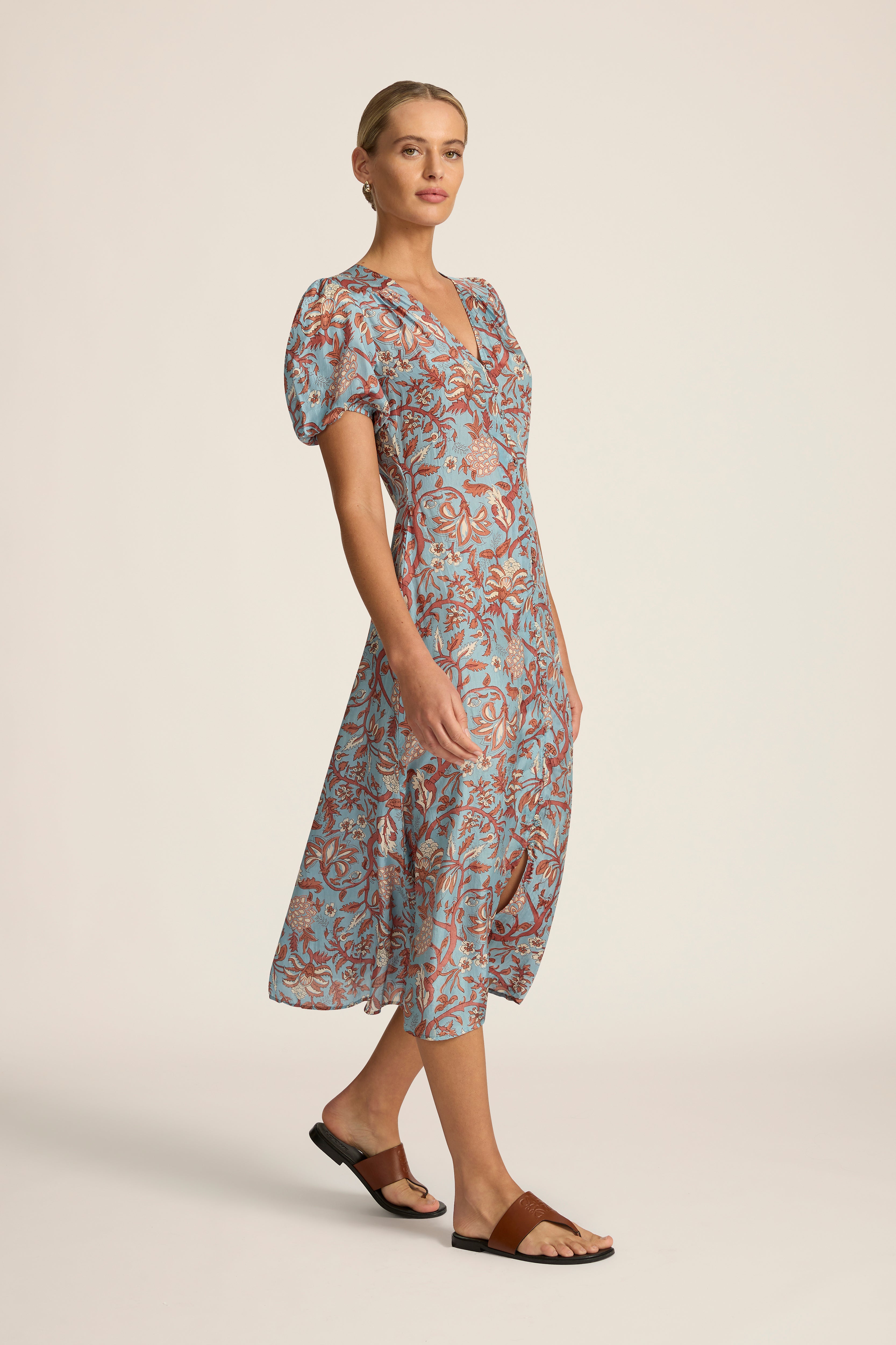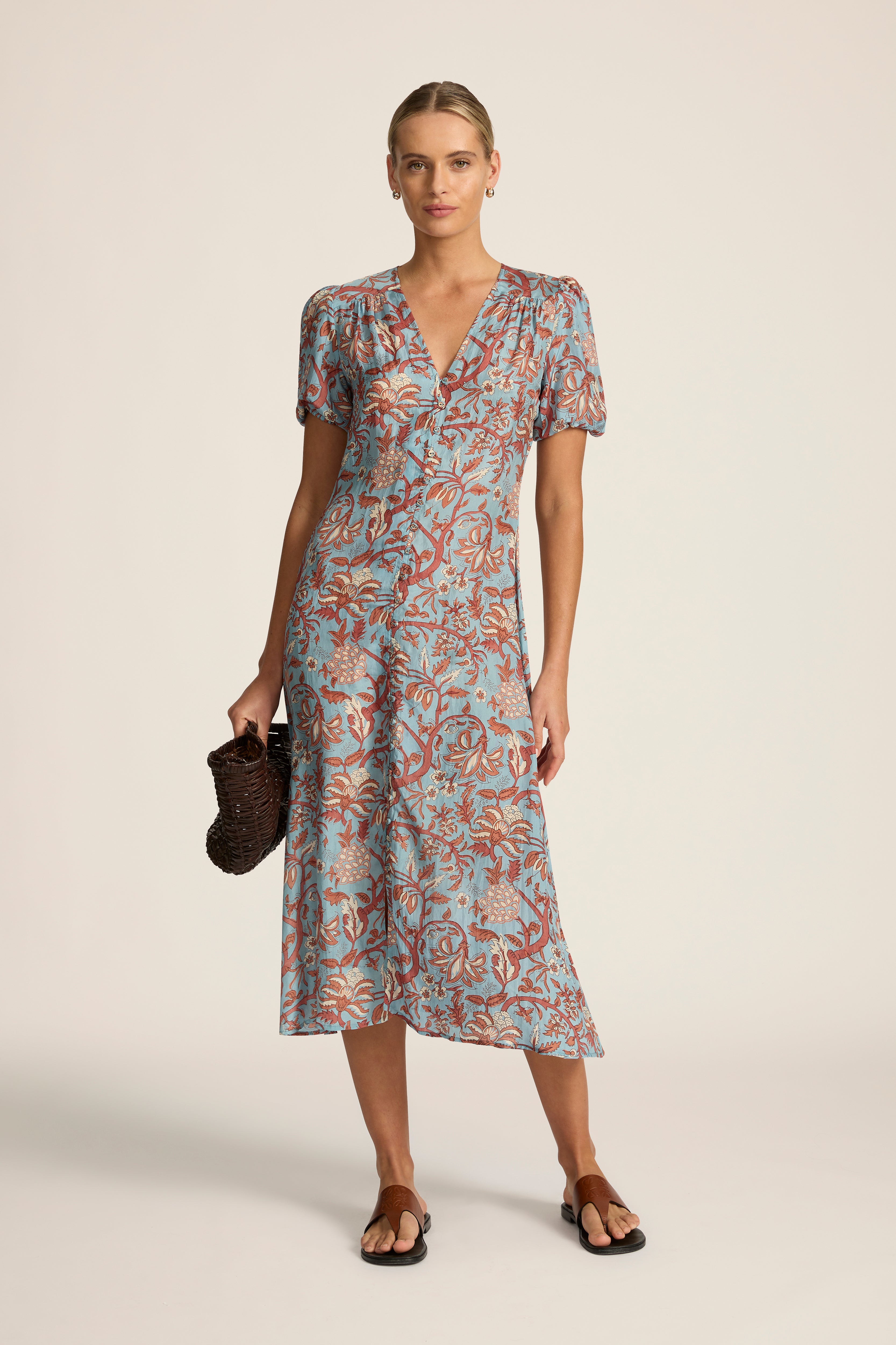 The ultimate demure daytime dressing companion, the Olivia Dress features a soft A-line silhouette and short gathered sleeves. Pair this midi length dress with a woven leather bag and minimal flats for city wanderings and coastal afternoons. This style runs small, we recommend going up a size.
